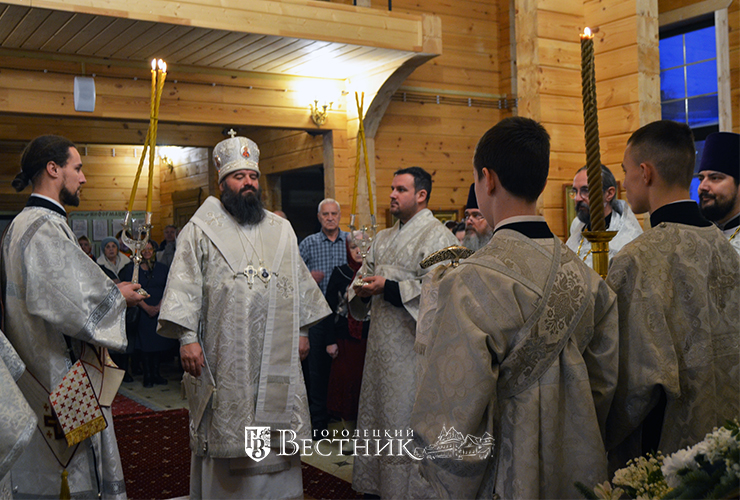 Праздник продолжился вручением многочисленных подарков, наград, медалей и архиерейских грамот тем, кто внёс неоценимый вклад в возведение этого уникального храма. Особо были отмечены художники фабрики «Городецкая роспись», благодаря которым в иконостасе новой святыни соседствуют библейские сюжеты и наши розаны, цветочные гирлянды и сказочные райские птицы.
