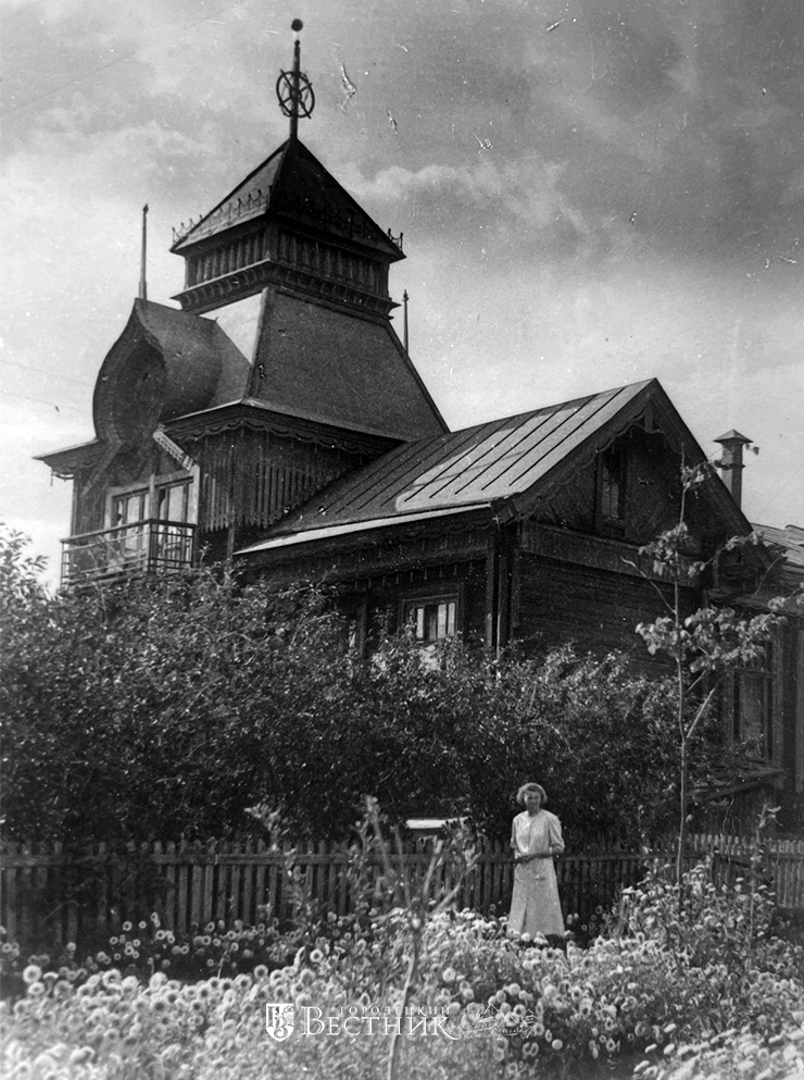 Ещё одна маленькая сенсация из архива – фотография дома Рязановых на пересечении улиц Свердлова и Фрунзе (на фото слева). До недавнего времени в этом доме находился детский сад № 9. В XX веке дом изменился до неузнаваемости. Ранее над его крышей возвышалась большая башенка. Скаты её шатра украшали выступы в виде кокошников. С неё на улицу выходил балкон. Этот примечательный дом был известен краеведам, но вот полноценного его фото не было.
