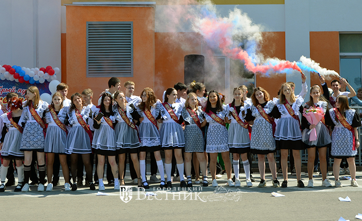 Под финальную песню выпускники и учителя вышли на авансцену, держа друг друга за плечи. Эмоциональный настрой усилила пиротехника – триколор из цветного дыма.