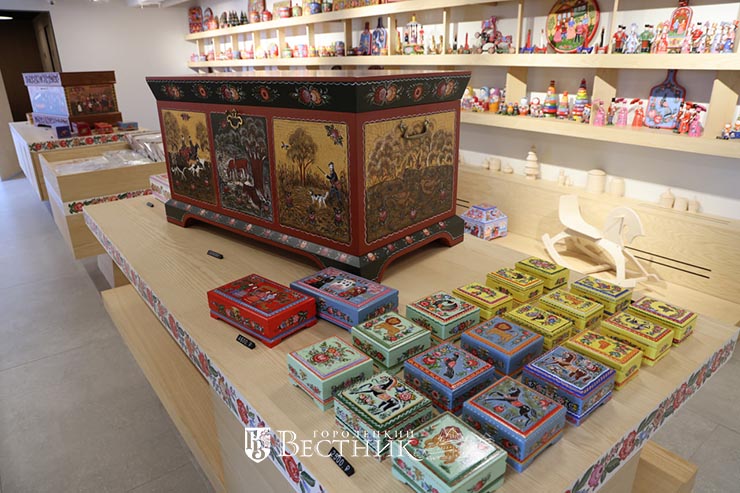 «Особый трепет, конечно, вызывает представленный здесь экспонат прялки – это то, с чего начиналась городецкая роспись. Несмотря на то, что мы уже два года работаем с современными дизайнерами, в приоритете всегда - сохранение традиций, и уже на этой базе мы создаём новые изделия, совершенно уникальные», - рассказала главный художник фабрики «Городецкая роспись», заслуженный мастер народных художественных промыслов Нижегородской области Наталья Семеновна Приваловская.