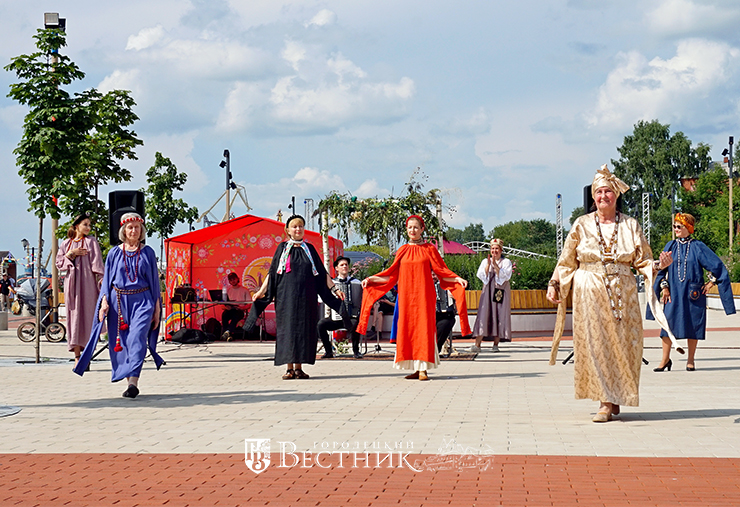 От площади Кольцова колодца праздничное цветастое шествие с песнями под гармошку прошло по историческим улицам Городца. На этот раз путь его лежал к новой благоустроенной площадке у «Города мастеров», где и развернулось гулянье.