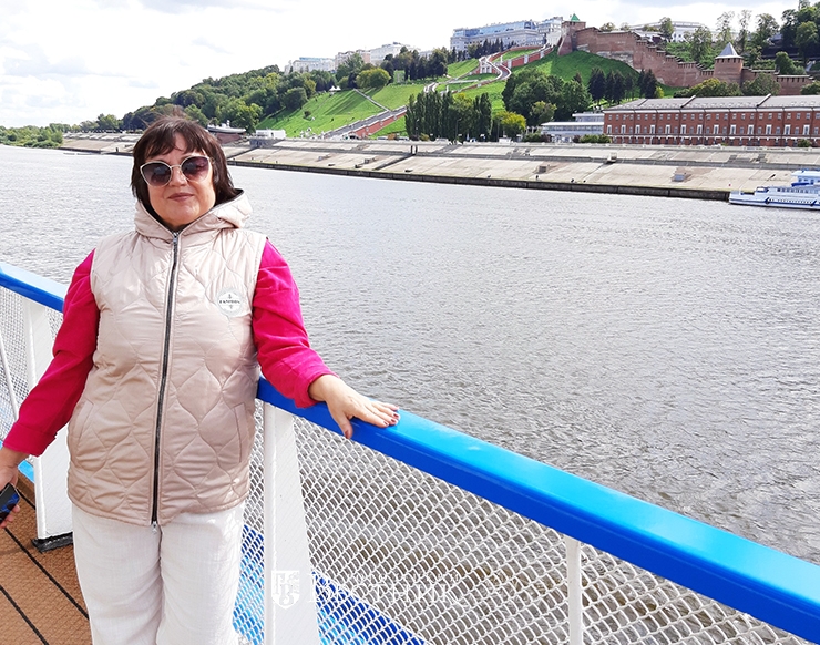 «Как провожают пароходы? Совсем не так, как поезда…» – поётся в известной песне, и мы это почувствовали, когда наш четырёхпалубный плавучий дом отчалил от Речного вокзала Нижнего Новгорода под звуки «Прощания славянки». Нам радостно махали с берега не только провожающие, но и просто гуляющие по набережной. А как прекрасен Нижний Новгород с воды – кремль, Чкаловская лестница, Канавинский мост, Стрелка! И вот уже всё это осталось позади, и мы устремляемся по Волге к первому пункту нашей экскурсионной программы.