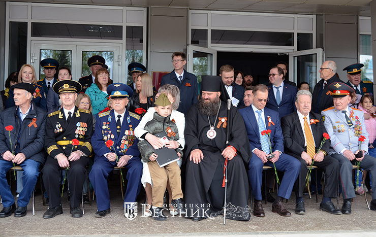 Почётное право поднятия главного символа праздника – знамени Победы – было предоставлено кавалеру ордена Мужества, ветерану боевых действий Андрею Сергеевичу Егорову и юнармейцу средней школы № 19 Егору Румянцеву, награждённому знаком «Юнармейская доблесть» I степени за спасение утопающего.