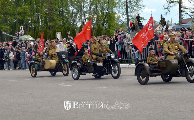 Колонной прошла техника, возглавляемая легендарной «Катюшей» – участники десятого юбилейного пробега «Спасибо деду за Победу!». Ревя моторами, промчались мимо восторженной толпы мотоциклисты из клуба «Ночные волки».