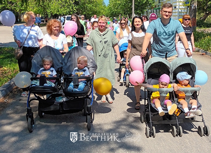 Шествие проследовало в парк культуры и отдыха имени Ю.А. Гагарина, где на площади перед летней эстрадой участники парада сделали круг почёта, а ведущий в это время называл их. Слова поздравлений прозвучали от заместителя главы администрации Городецкого округа Е.П. Носковой и начальника отдела ЗАГС города Заволжья Е.А. Терешиной. Они вручили подарки близнецам Даше и Маше Родякаевым, которые именно в этот день, 1 июня, отмечали свой восьмой день рождения.