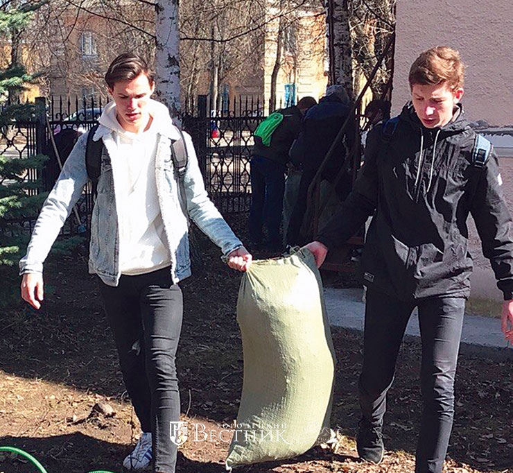 Студенческая братия убирала аллею, ведущую ко Дворцу культуры, территорию возле двух корпусов техникума. В основном, ребята убирали листву граблями и лопатами. Также они участвовали в погрузке и вывозе мусора.