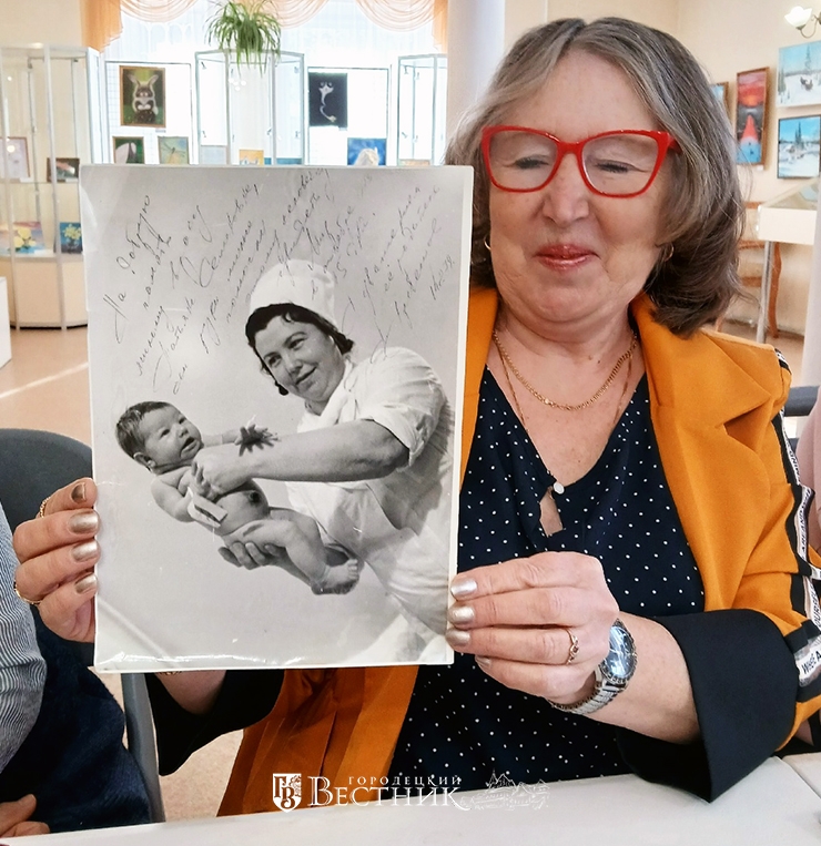 Некоторые участницы встречи рассказали о своих родственницах, принесли фотографии из семейных архивов. Так, Т.А. Мазина поделилась воспоминаниями о своей маме – Зое Никаноровне Чапуровской, долгое время работавшей акушеркой в Заволжском роддоме. Н.Л. Ивушкина поведала о маме своего супруга – акушере-гинекологе Татьяне Семёновне Ивушкиной (на снимке).