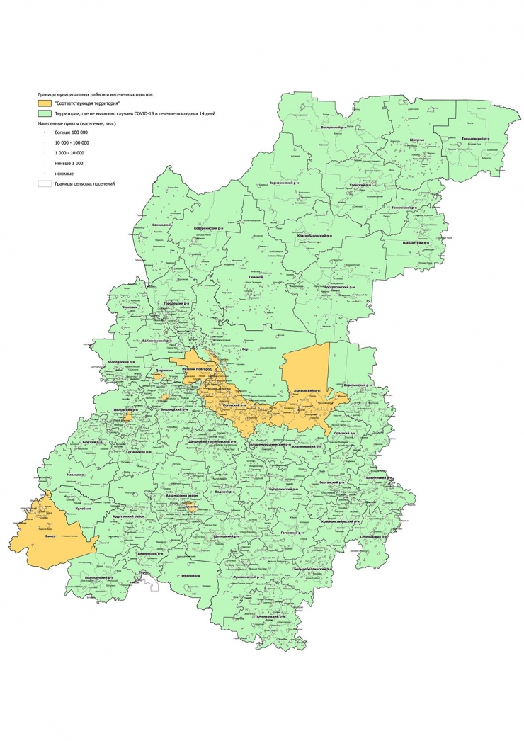 В этих населенных пунктах и муниципальных образованиях за последние две недели были выявлены случаи COVID-19. Решение об их вхождении в перечень «соответствующих территорий» приняла Комиссия по предупреждению и ликвидации чрезвычайных ситуаций и обеспечению пожарной безопасности Нижегородской области.