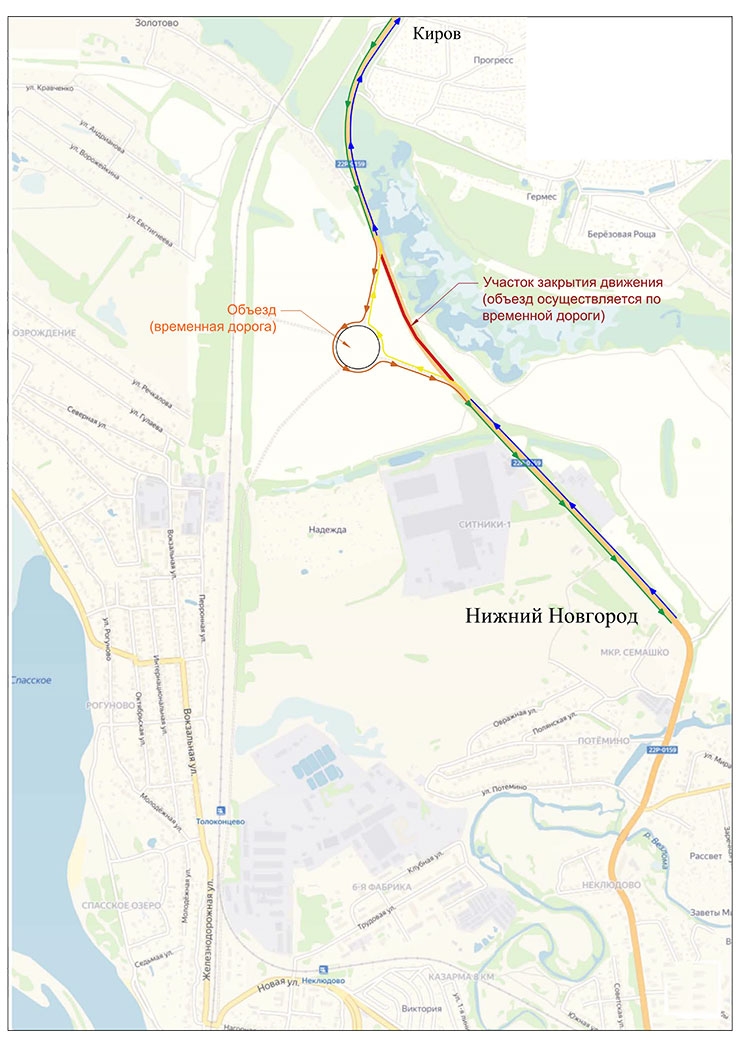 Строительство транспортной развязки Неклюдово - Золотово в Борском районе продолжается. В связи с необходимостью реконструкции автомобильной дороги Р-159 на участке от 20,032 км до 20,112 км будет закрыто движение транспорта.