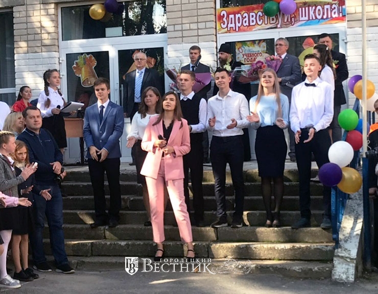 Почётное право поднять флаг Российской Федерации получили учащиеся 11 класса, отличники учёбы Ирина Карпычева, Алина Пелёвина, Владислав Будилин, Карина Багрова, Ангелина Лебедева, Анастасия Ненастьева, Алина Пашкина и победительница муниципального этапа конкурса «Новое поколение 21 века» Валерия Каплинская.