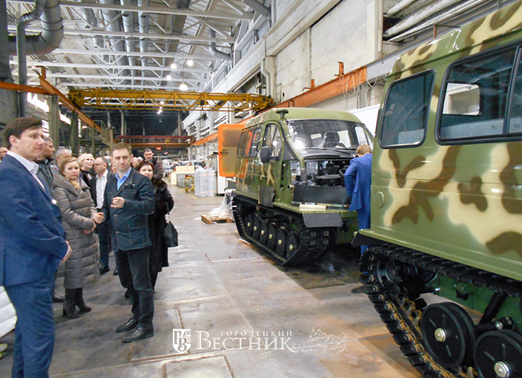 Сейчас это современное предприятие, оснащённое новейшим оборудованием, на котором трудится около 650 человек. Завод выпускает более десяти модификаций снегоболотоходов и тягачей, пользующихся большим спросом на труднопроходимых территориях. Михаил Владимирович провёл участников мероприятия по цехам и показал все этапы производства транспортных средств повышенной проходимости.