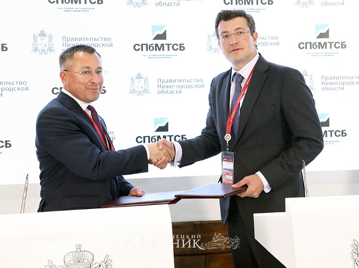Губернатор Нижегородской области Глеб Никитин и президент АО «Санкт-Петербургская Международная товарно-сырьевая биржа» Алексей Рыбников подписали соглашение о сотрудничестве. Документ подписан на Петербургском международном экономическом форуме 6 июня 2019 года.