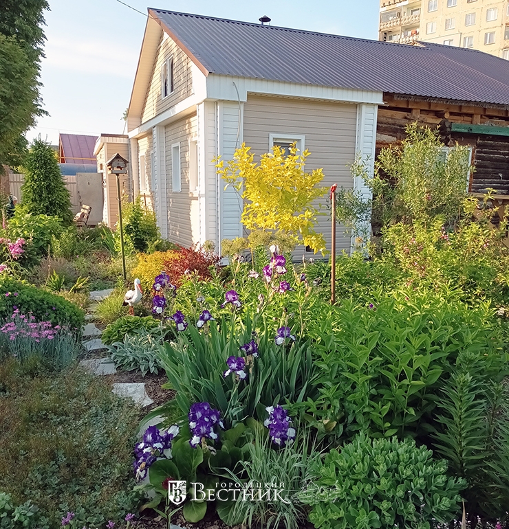 – Мы с мамой и сестрой приехали в Заволжье в 1987 году из Дальнего Константиново, купили полдома на улице Гризодубовой. Сейчас я на пенсии, ухаживаю за мамой и занимаюсь садом и огородом на своих двух сотках земли. Я ещё с детства очень любила заниматься рукоделием – шила, вязала (нас мама этому научила), отсюда, наверное, моя тяга к оформлению дома и сада. Сначала увлеклась разведением цветов около дома, потом начала что-то придумывать. Первое, что я сделала – сплела из веток изгородь вдоль цветника. Потом лопнула старая деревянная бочка, её нельзя уже было использовать по назначению, а выкинуть было жалко, я посадила в неё цветы и – понеслось!