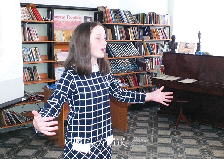 Отметим, что главным призом победителям была книга «Места, связанные с именем Максима Горького, в Городце и его округе». Её собственноручно вручала автор Л.А. Климова. Украшением праздника в честь юбилея М. Горького стало выступление юных артистов ЦДТ ЦВР «Радуга»: вокального квартета «Горошины» и солистки вокальной студии «Непоседы» Анастасии Мочаловой.