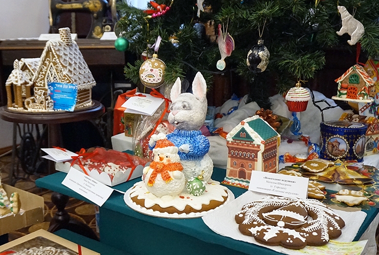 Постоянные участники конкурса – Елена Титова с внуком Максимом Сытиным. Елена, кондитер по профессии, изготовила тот самый терем Деда Мороза, а Максим испёк имбирный пряник в виде рождественского венка с колокольчиком.