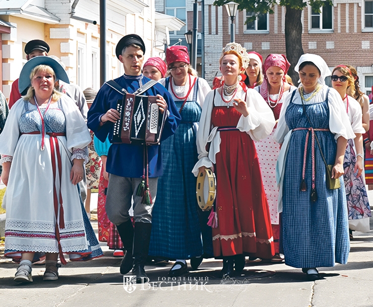 – Мы, ансамбль «Макошь», уже второй день празднуем свадьбу вместе с молодожёнами Дмитрием и Юлией, сопровождаем их в свадебной процессии, проводим традиционные игры и обряды. Здесь, в Городце, сегодня собралось много красивых людей в красивых нарядах. Царит замечательное настроение, потрясающие эмоции. У всех на лицах радость! Это так приятно! – говорит руководительница ансамбля Ирина Коваленко. – Мы сегодня одеты в разные костюмы: воскресенский, сеченовский, шахунский и другие. Один королевский косоклинный сарафан для нашей участницы Елены Ноздриной скроила мэтр фольклора Наталья Пантелеймоновна Грановская, это было 20 лет назад. Народные костюмы, народные песни, представления – они дают нам силы, дарят радость. Это дело нашей жизни. Мы бережём традиции в себе и стараемся донести их до людей!