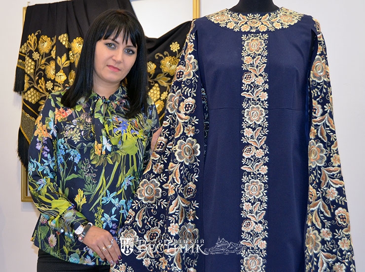 В вышивке женских костюмов, платьев и накидок используются традиционные городецкие мотивы, мастера предприятия бережно хранят народные традиции древнерусского золотошвейного искусства.