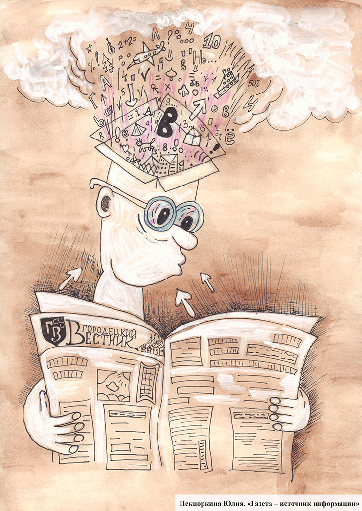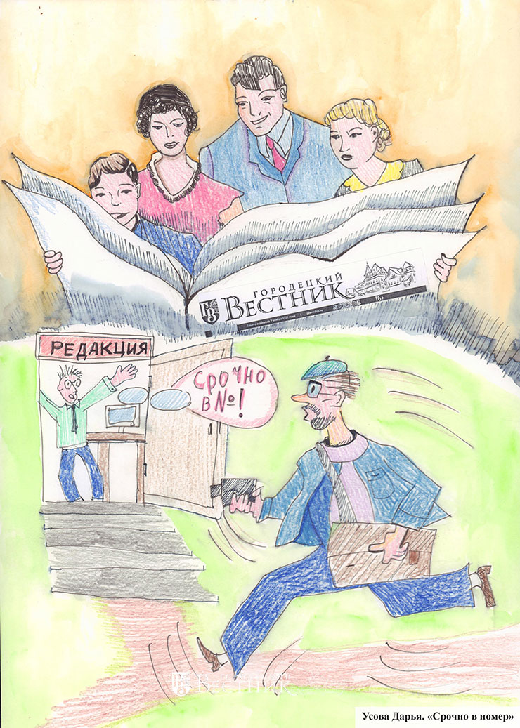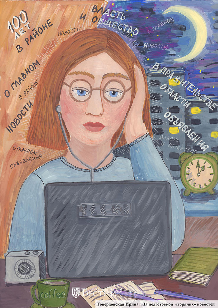 1 место – Ирина Говердовская (10 лет), «За подготовкой «горячих» новостей» (Детская художественная школа г. Городца, преп. М.Ю. Плеханова);