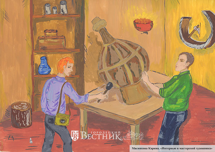3 место – Карина Мясникова (15 лет), «Интервью в мастерской художника» (Детская художественная школа г. Городца, преп. Т.И. Иванова).