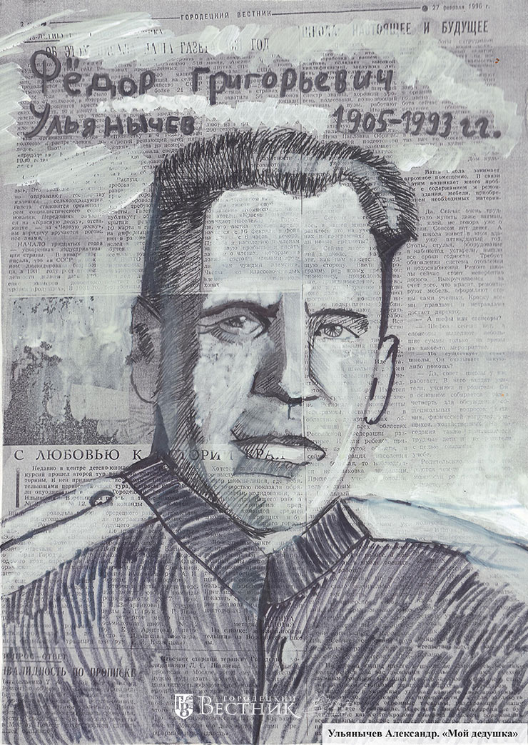 3 место – Александр Ульянычев (9 лет), «Мой дедушка» (арт-студия «Фантазия» клуб «Чайка», преп. Ю.Н. Спицына).