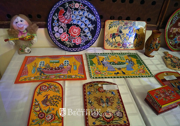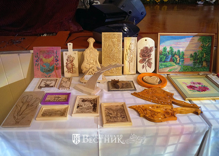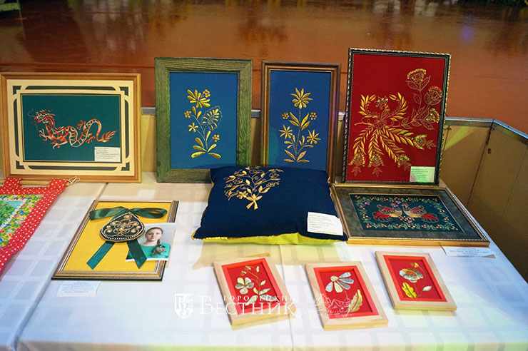 Все конкурсные работы сделаны на довольно высоком уровне. Особенно красиво смотрелись на выставке произведения начинающих мастеров городецкой росписи и золотной вышивки.