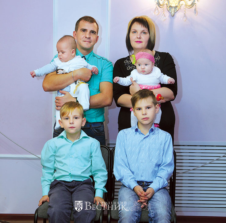 Среди участников праздника – молодые супруги Максим Николаевич и Анна Александровна Серебряковы. Старшие сынишки уже школьники – Вадиму девять лет, Коленьке – семь. А в начале июня этого года жизнь семьи озарили своим рождением два маленьких человечка – Валерия и Никита, сейчас им пять месяцев. Конечно, двое малышей – это двойные хлопоты, но и счастливых и радостных эмоций от успехов детей, их первых несмелых шагов, первых долгожданных слов «мама» и «папа» будет вдвое больше!