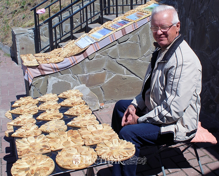 Аромат можжевельника примешивается к запаху мёда на фестивале «Праздник пряника» – свои «пряники» (подставки под горячее и впрямь по форме напоминающие любимое лакомство) сюда тоже привозит Евгений Евстафьевич.