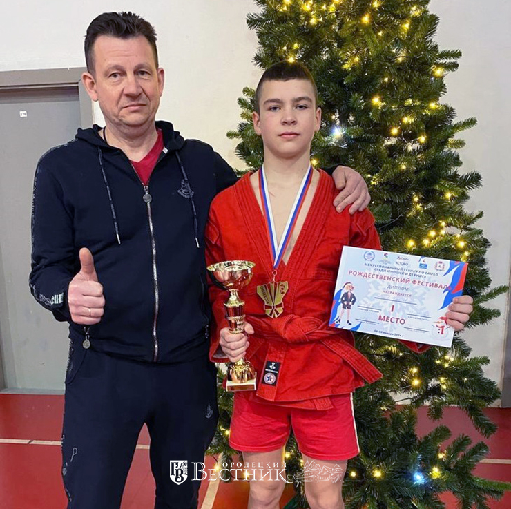 Дмитрий Казаков и его младший сын Ярослав со своей очередной наградой. 2024 год