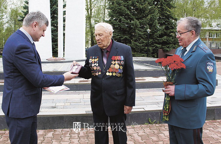 Медаль к 75-летнему юбилею Победы у Вечного огня и Книги памяти была вручена Ивану Михайловичу Ерикову (фото внизу). Передавая награду Почётному гражданину города Городца, глава местного самоуправления Городецкого района Н.Ф. Поляков и глава администрации Городецкого района В.В. Беспалов пожелали ему крепкого здоровья и бодрости духа. После награждения Иван Михайлович возложил к Вечному огню алые гвоздики.