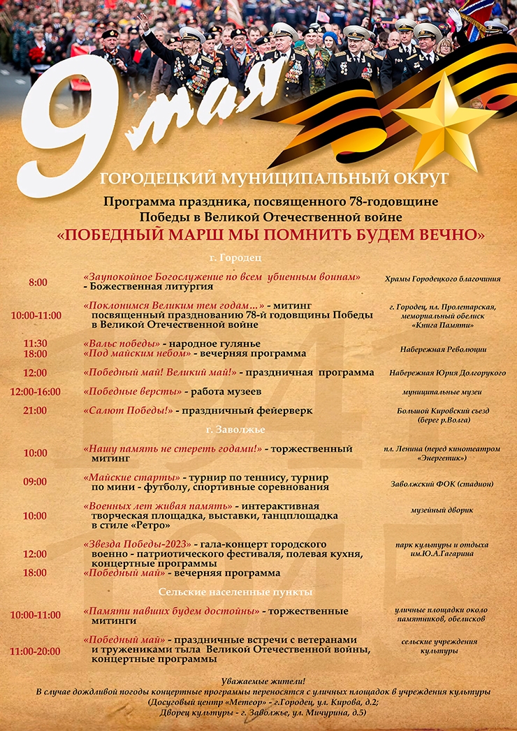 Программа праздника, посвящённого 78-й годовщине Победы в Великой Отечественной войне.