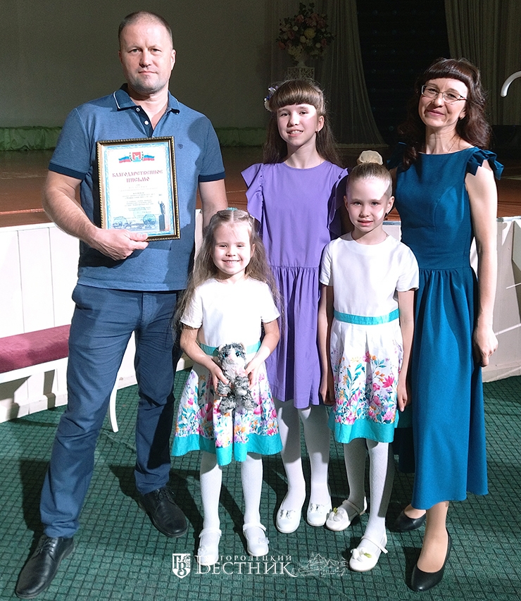 Благодарственное письмо за победу в номинации «Многодетная семья» вручили семье Торопкиных из Городца (Сергей Николаевич, Татьяна Павловна, сын Дмитрий, дочери София и Ксения). Семья активно принимала участие в народных фестивалях города: «Мастеров народных братство», «День народного костюма», «День пряника», «Рождественский фестиваль народного творчества» и др. Мама награждена Почётным дипломом многодетной матери Нижегородской области III степени. Дочери посещают студию акробатического рок-н-ролла, являются победителями разных общероссийских и областных соревнований.