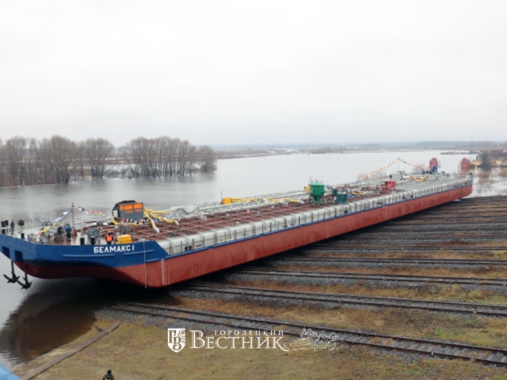 Нефтеналивную баржу спустили на воду в Навашине на «Окской судоверфи»