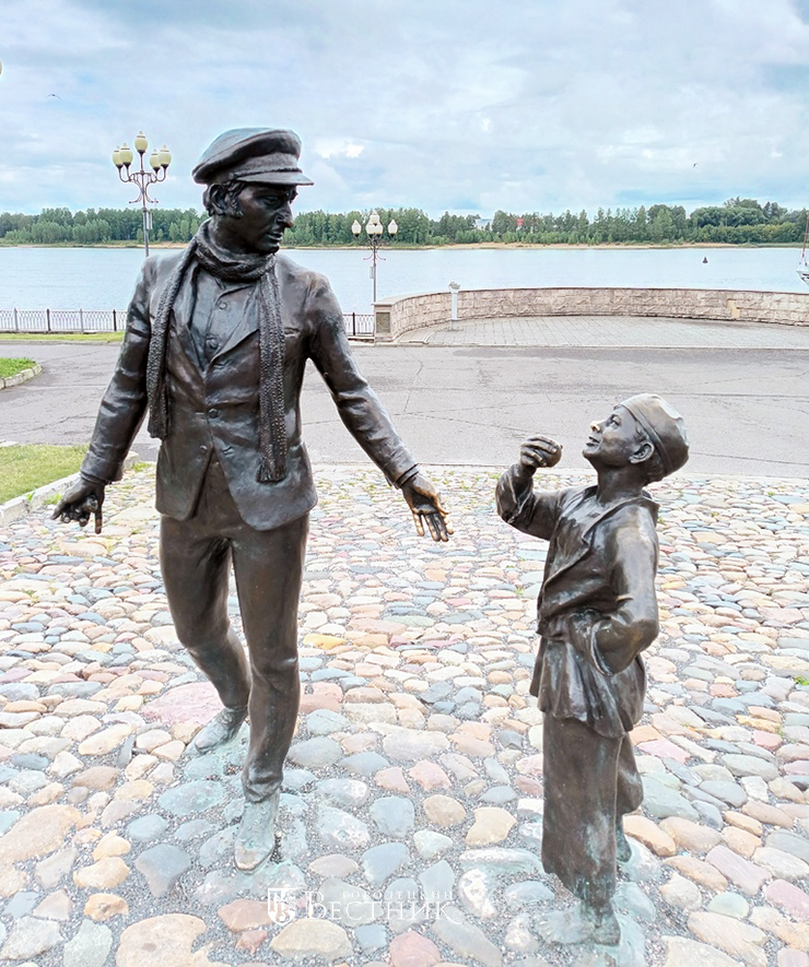 На нашем пути встретилось большое количество памятников и скульптур. В этом плане хочется отметить город Рыбинск, который, кстати, несколько раз менял своё название и один раз – возраст. Прямо у причала нас встретил памятник бурлаку – собирательный образ человека очень распространённой и уважаемой в своё время профессии. Чуть дальше на набережной стоит скульптура, изображающая Остапа Бендера и мальчика, просящего 10 копеек, в память о съёмках здесь легендарного фильма. Рядом, опершись на парапет, стоит, задумавшись, изваянный из бронзы поэт Лев Ошанин, уроженец Рыбинска, подаривший нам «Солнечный круг», «Течёт река Волга» и другие известные песни. На Красной площади находится очень необычный памятник В.И. Ленину – вождь изображён в зимнем одеянии: в пальто и шапке. А ещё особенностью, «изюминкой» города является то, что все вывески на магазинах в исторической части оформлены в дореволюционном стиле.