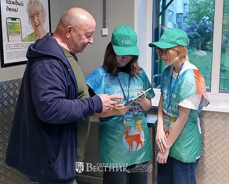Волонтёры сразу обратились к нам с просьбой проголосовать за благоустройство и поддержать свой город. В этот день помочь жителям в голосовании вышли ученицы школы № 2. По их словам, сегодня граждане не так активно реагируют на предложение отдать голос – многие спешат, однако охотно берут буклетик с инструкцией для самостоятельного голосования. Но вот из магазина выходит мужчина и сам просит помочь ему проголосовать.