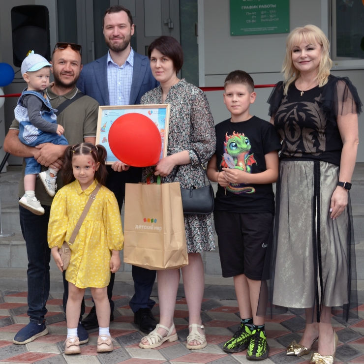 Почётное право перерезать алую ленточку вместе с В.А. Цыгановым получила многодетная семья Шешиных.