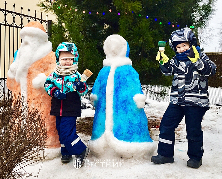 Хотя в этом году снега «кот наплакал», и морозы невелики, но когда от дочери из Нижнего Новгорода поступил звонок, что, мол, отец, готовься к приезду своих внуков, то Виктор Васильевич, долго не раздумывая, собрал всё снежное «богатство», которое только можно было собрать возле дома, и приступил к изготовлению ледяных новогодних персонажей – Деда Мороза и Снегурочки.