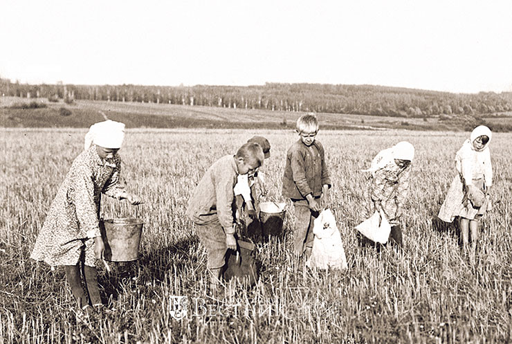 Наша семья держала корову – нашу кормилицу, спасительницу. Чтобы заготовить сено на корову, мать, старший брат и я работали в колхозе с июня по октябрь. Сначала – на силосовании, потом на заготовке сена, затем – на уборке зерновых, льна, овощей. У нас была бригада из трёх семей: три женщины, и у каждой по двое детей. Условия заготовки сена были такие: 20 тонн сена колхозу, две тонны себе. А надо заготовить на три коровы (на три семьи). Будет заготовлено сено на зиму – значит будет наша кормилица жива и мы сыты – это знали не только взрослые, но и дети.