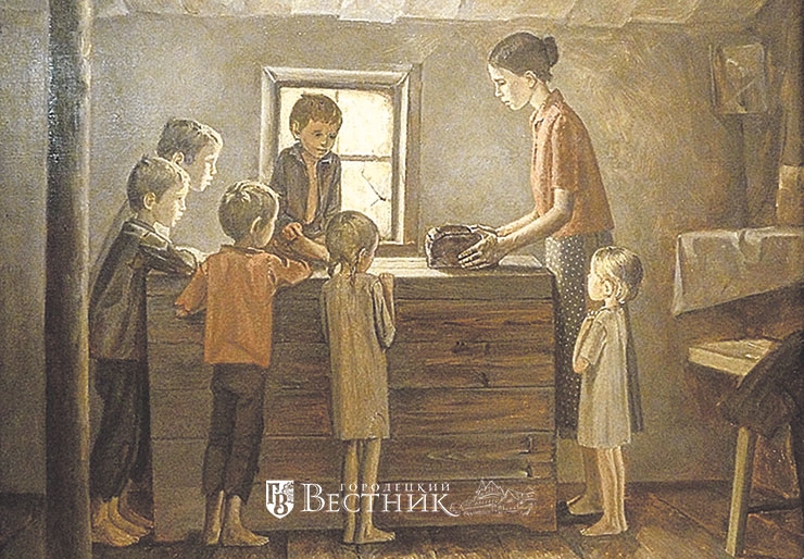 Через год, 20 марта 1942 г., отца проводили на фронт. На руках моей мамы, Ефросиньи Петровны, полуграмотной женщины, остались пять детей в возрасте от полутора до 14 лет. Наступили самые трудные, холодные, голодные годы нашего детства. В стране были введены карточки на хлеб, соль, спички, мыло. Большое горе было семье, потерявшей хлебные карточки – новых не выдавали. Сушили очистки от картофеля, толкли, пекли лепёшки. Собирали крапиву, луговой лук, кислицу, клевер, одуванчики и другую траву. Из мороженой картошки, которую собирали на колхозных полях, пекли лепёшки. Какими они казались вкусными! Ни конфет, ни колбасы мы не знали, даже сахара, печенья, масла не пробовали!
