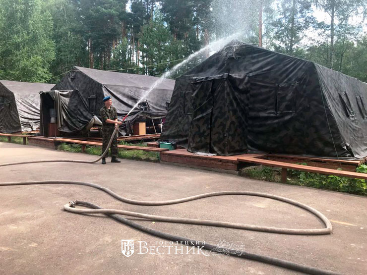 – У нас в лагере есть свои боевые расчёты – действуют три добровольных пожарных дружины: одна из них отвечает за пожарный щит, другая команда работает на мотопомпе, которая закрывает весь палаточный лагерь, и, в случае необходимости оказания помощи соседнему лагерю, дружины по команде убывают туда для принятия мер пожаротушения, – рассказал начальник лагеря «Хочу стать десантником» Михаил Булулуков.