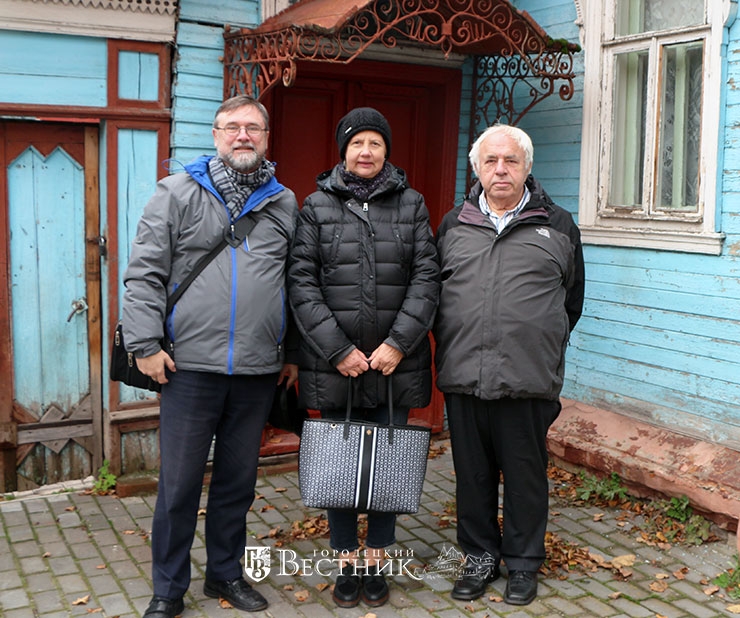 Потомки великих мореплавателей, которые гордятся историей своей семьи, знают родословную и являются незаурядными культурными деятелями, стоят на фоне традиционного городецкого дома, построенного в XIX веке. Фото на память не только им, но и всему Городцу.