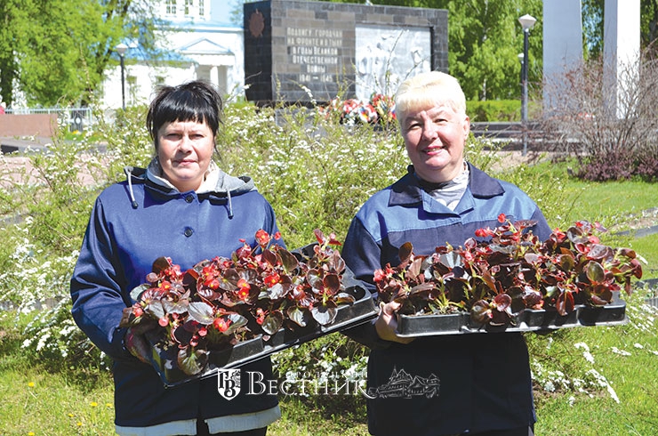 Перед праздником 9 Мая цветами украсили клумбы у «Книги памяти», у памятников князю Александру Невскому, дважды Героя Советского Союза А.В. Ворожейкина, в сквере у памятника погибшим воинам-городчанам в годы Великой Отечественной войны, а также цветники у городского фонтана на площади Кирова.