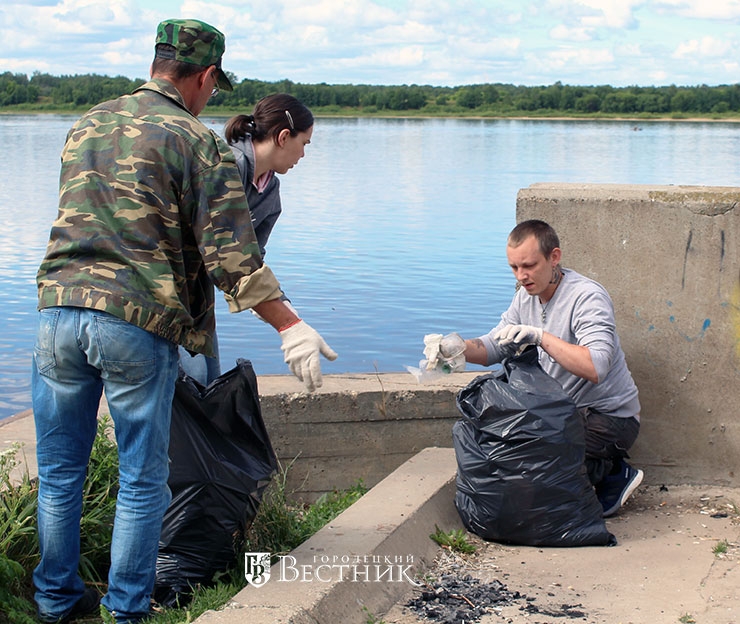 На причальную стенку вышла большая группа представителей пансионата «Буревестник». Сначала шли с полупустыми мешками, но там, где причальная стенка заканчивается, все мешки пригодились. В выходные дни здесь, видимо, отдыхала компания, а может, и не одна. «Нельзя же быть такими свиньями!» – слышалось то и дело. И правда: отходы от «приятного времяпрепровождения» валялись и под лодками, и у стенки, и в кустах. Причём, некоторые аккуратно сложены в пакеты. А вот донести их до мусорного бака сил не хватило…