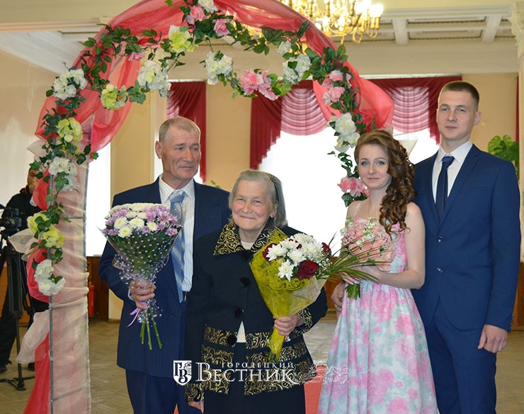 Были в этот день на торжестве и особые гости. Это супружеская чета Виктора Александровича и Валентины Николаевны Скворцовых. 12 июня этого года они отметили свою золотую свадьбу. «Перед нами – люди, которые заслуживают большого уважения за своё трудолюбие и долгую супружескую жизнь. Верю: они станут хорошим примером для подражания молодым», – так представила собравшимся золотых юбиляров начальник отдела ЗАГС г. Заволжья Е.А. Терешина.