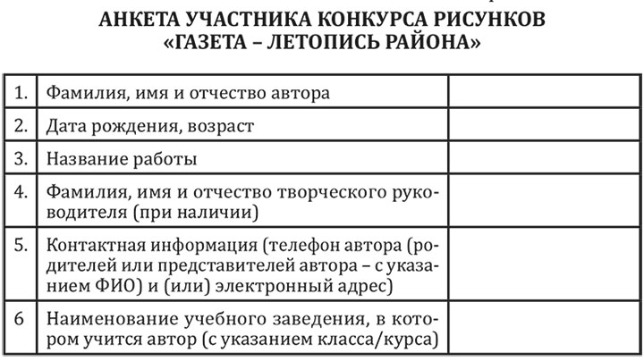 3.3. Рисунки, содержащие изображения торговых марок или элементы, охраняемые авторскими правами, не принимаются. Работа может содержать мотивирующий текст (слоган), отражающий призыв к чтению районной газеты.