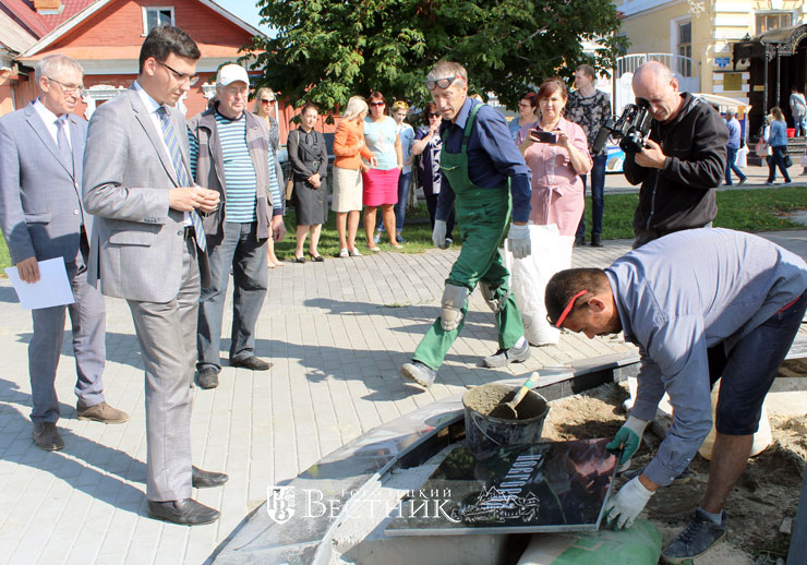 Реставрационные работы близятся к завершению. Поклонный камень, перенесённый на новое место – между двумя Александрами, будет открыт 4 сентября, в День города Городца.