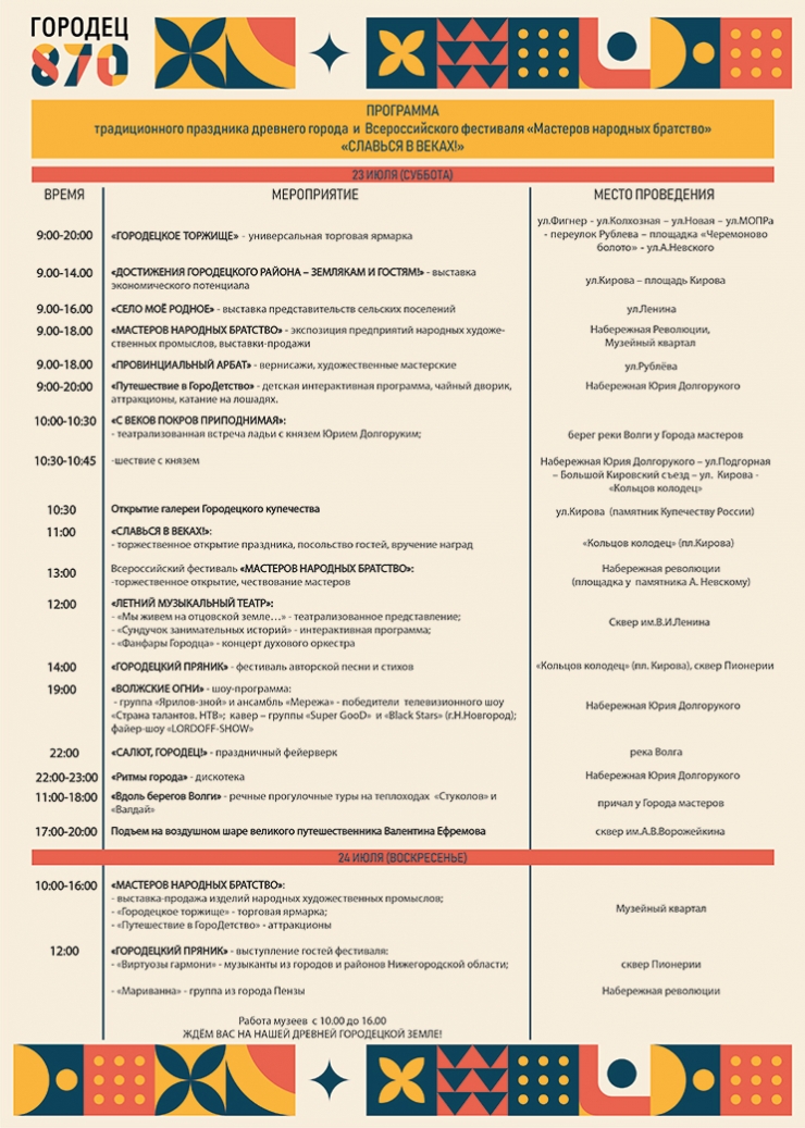 Программа праздника города и фестиваля "Мастеров народных братство"
