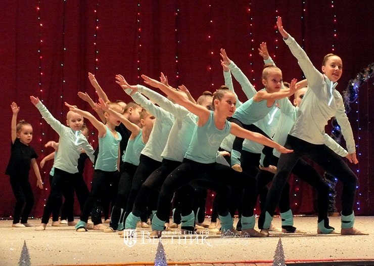 Перед зрителями развернулась увлекательная история, в которой можно было узнать и героев любимых мультфильмов Малыша и Карлсона, и обожаемую всеми детьми Мери Поппинс. Очень украсили представление индивидуальные выступления старших гимнасток и групповые дебютные выходы самых младших. Не обошлось и без чудесных превращений и новогоднего поздравления Деда Мороза и Свинки Пеппы.