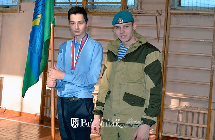 Победителям соревнований вручил подарки руководитель военно-патриотического клуба «Юный десантник» Нижегородской кадетской школы О.Л. Синькевич. Он поблагодарил директора школы М.К. Дурандину за патриотическое воспитание подрастающего поколения и вручил учебному заведению комплекты камуфляжной формы, которые пригодятся ученикам для популярной в школе игры «Зарница». В конце встречи кадеты возложили цветы к мемориалу «Скорбящая мать» и бюсту О. Кошевого у школы.
