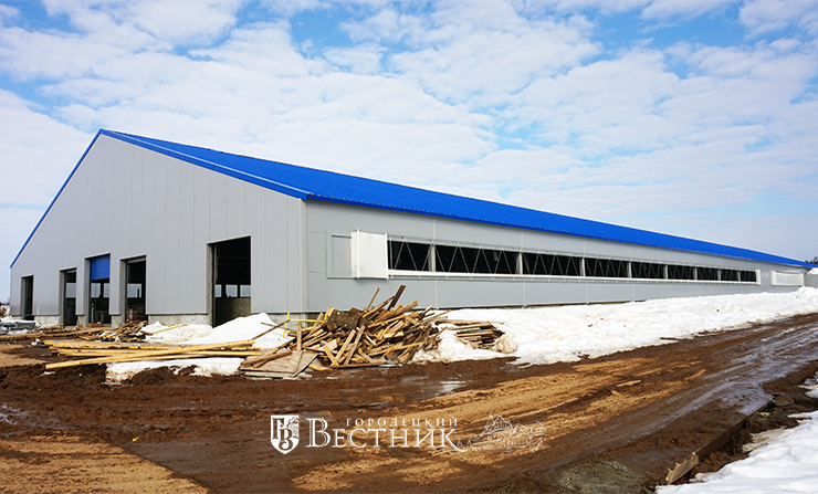 Здесь будут жить 402 головы дойного стада. Работников для их содержания понадобится меньше, чем сегодня для содержания 200 голов в другой ферме хозяйства. Впрочем, восемь доярок, занятых там, тоже без дела не останутся. При дойном стаде в 340 голов сейчас, руководство планирует увеличить его до 600, поэтому старая ферма тоже будет заселённой. На проектную мощность новый двор планируется вывести чуть больше, чем за полгода. Пополнение будет своё, хозяйство является племрепродуктором, и скот здешний пользуется спросом.