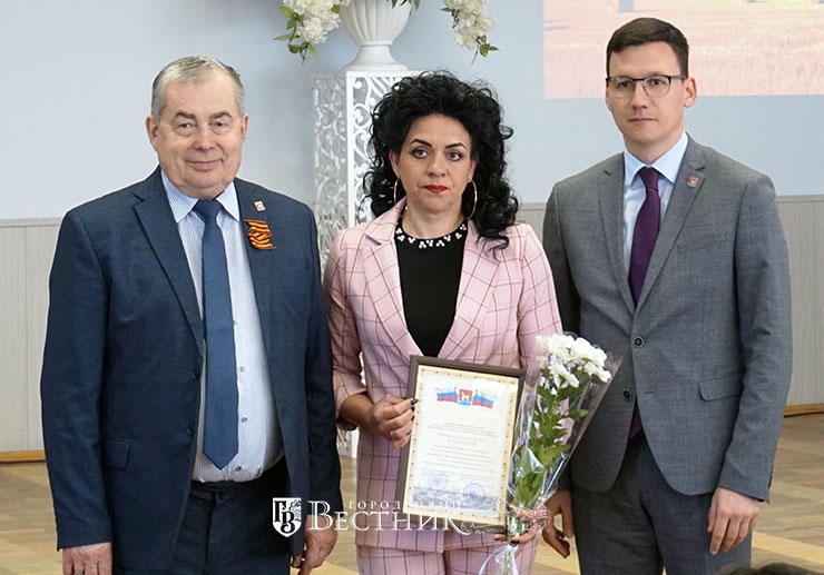 Н.Ф. Поляков и А.Ю. Мудров награждают Н.А. Туманину Н.Ф. Поляков и А.Ю. Мудров награждают Н.А. Туманину Фото А. Осокина